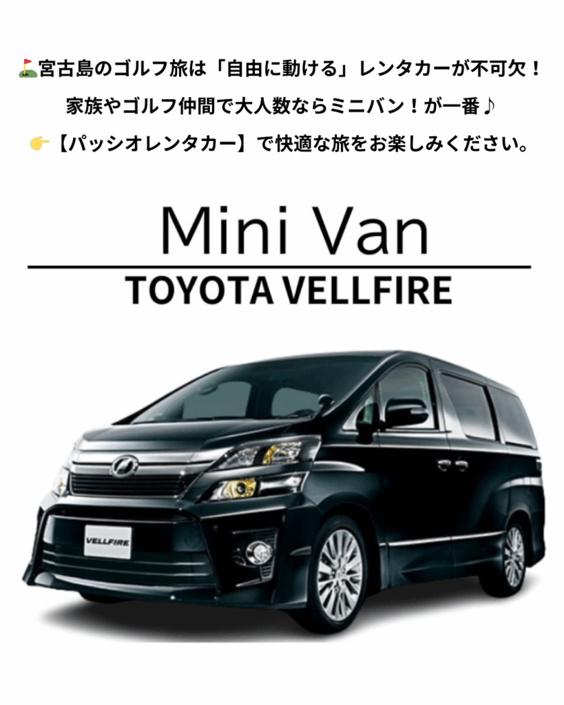 宮古島ゴルフ旅の正解なのか?これらのコースを快適に回るなら、ゴルフバッグが収まるミニバンや大型SUVを選ぶと安心。軽自動車でも積める場合はありますが、余裕を持った車種選びがベターです。